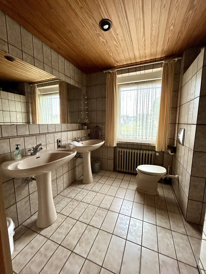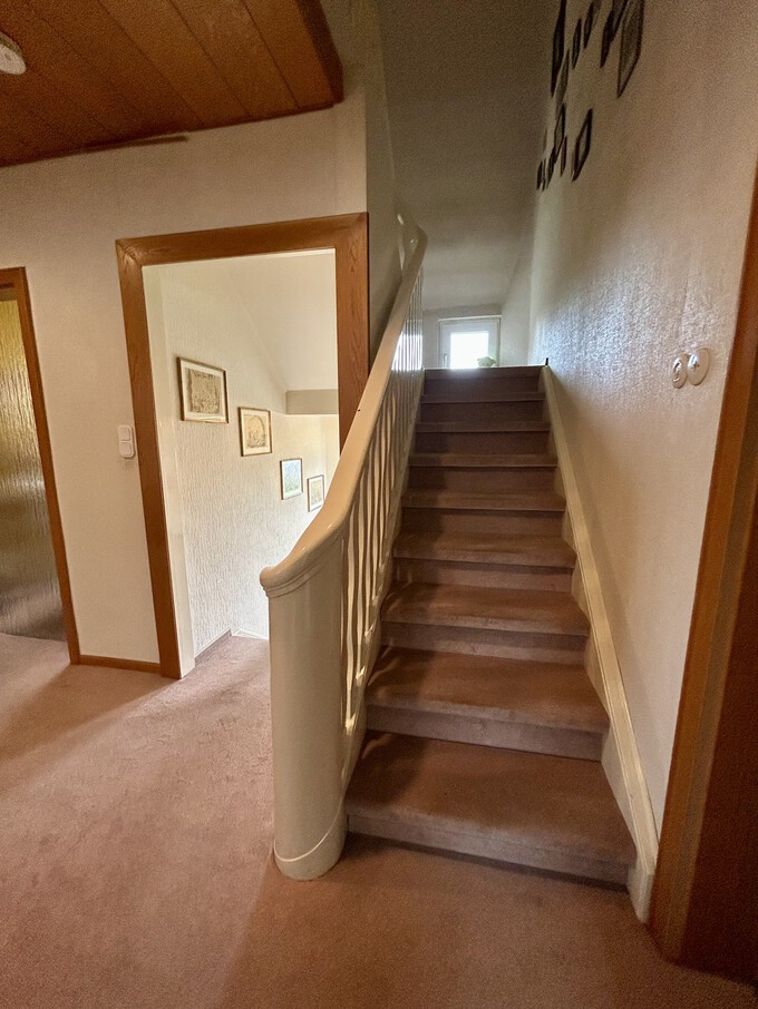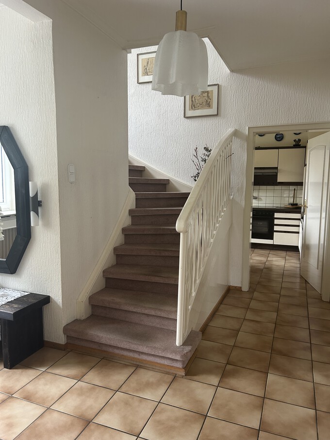 Dieses charmante Einfamilienhaus (DHH) aus dem Jahr 1951 vereint den soliden Charakter der Bauzeit mit modernem Wohnkomfort. Auf ca. 170m² Wohnfläche erwarten Sie großzügige Räume, eine angenehme Deckenhöhe von ca. 2,80 m und vielfältige Möglichkeiten zur individuellen Gestaltung. Der durchdachte Grundriss eignet sich ideal für Familien – jedes Zimmer bietet ausreichend Platz, etwa als Kinder-, Arbeits- oder Gästezimmer. Besonders einladend wirken der großzügige Eingangsbereich und das stilvolle Treppenhaus. In den 1980er-Jahren wurde das Haus umfassend modernisiert: Neben optischen Erneuerungen wurden auch technische und bauliche Aspekte überarbeitet. So entstand eine gelungene Verbindung aus traditioneller Substanz und zeitgemäßer Ausstattung. Ein echtes Highlight ist der große Außenpool im Garten, der durch Solarpaneele beheizt wird – ideal für entspannte Sommertage. Das rund 964 qm große Grundstück bietet viel Platz für Gartenideen, Spiel und Erholung. Dank seiner Größe genießen Sie hier ein hohes Maß an Privatsphäre. Das Haus ist voll unterkellert und überzeugt durch seine solide Bauweise. Eine massive Stahlbeton- Fertiggarage bietet zudem einen sicheren Stellplatz für Ihr Fahrzeug.